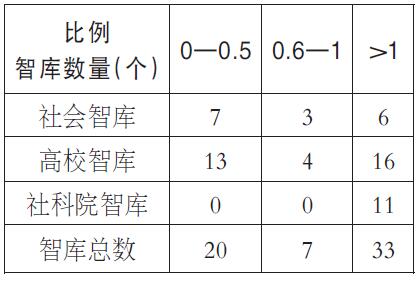 表1:智库全职人员/兼职人员比例分布表
