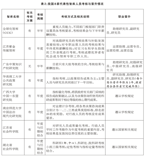 表2:我国8家代表性智库人员考核与晋升情况