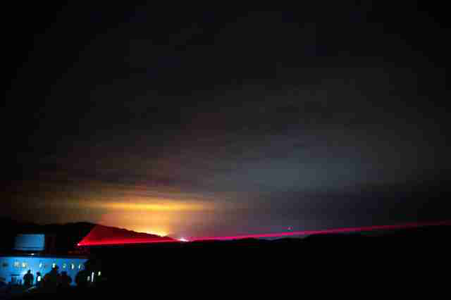 (2016年12月22日 丽江量子通信地面站望远镜发射红色信标光,“等待”“墨子号”过境。新华社记者 金立旺 摄)