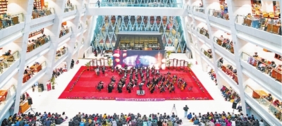 山西太原图书馆变身音乐厅,数百读者聆听新年音乐会。光明图片/视觉中国