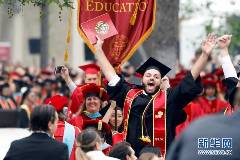 (包括耶鲁大学在内的美国知名高校均卷入这起超大招生舞弊丑闻中,其中南加州大学受贿金额最大。图为南加州大学毕业生参加毕业典礼。图片来源:新华网)