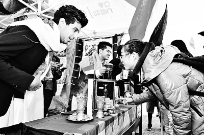 2019年3月31日,位于青岛西海岸新区的山东科技大学,“一带一路”国家留学生在向中国大学生介绍自己国家的文化。韩洪烁 摄/光明图片