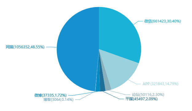 据人民网舆情数据中心监测数据显示,2020年2月3日至6月14日,共监测到“餐饮业复工复产”相关舆情信息217.6万篇次。如图所示,网媒、微信、APP是相关舆情信息的主要分布渠道。