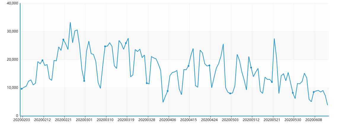 图2.餐饮业复工复产舆情信息走势图(单位:篇次)